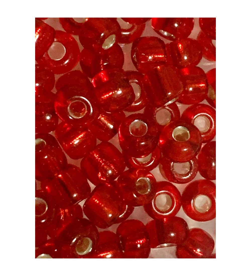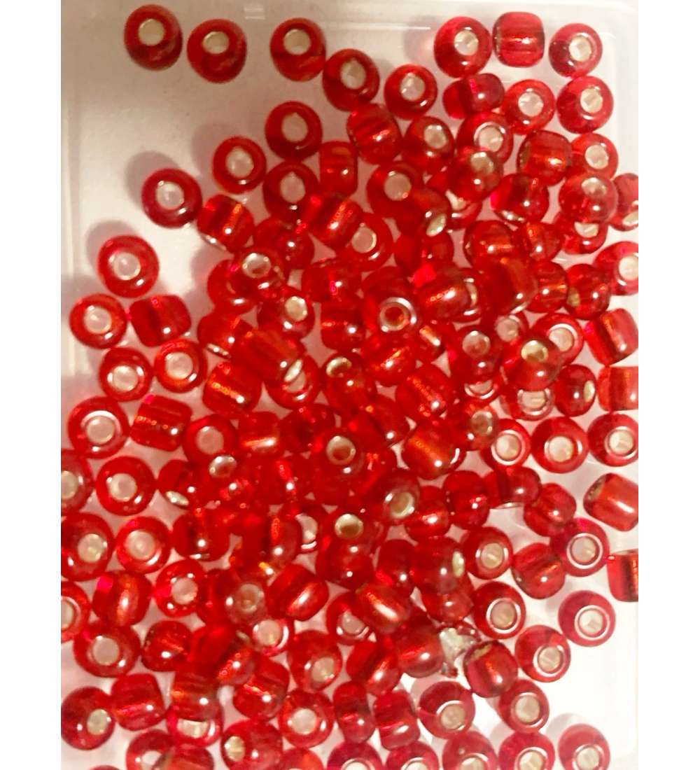 Red Beads with Silver Hole Lining